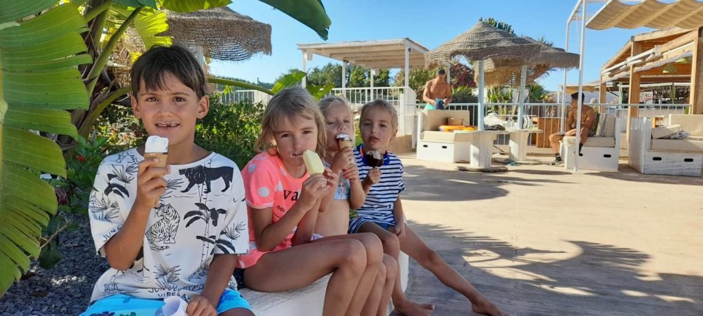 Obľúbili sme si Montagnar, kamennú pláž z toscy, kde sme parkovali auto priamo na brehu. Deti sa hrali na karavan, chytali rybky a kraby v malých jazierkach, nakupovali kamene a varili z nich večeru pre plyšových kamarátov. Prvý júnový týždeň nás prišli pozrieť bratranec a sesternica zo Slovenska. Prenajali sme si prázdninový dom s bazénom na La Plane, len pár minút cesty od miradoru el Cabo de San Antonio. Každé dopoludnie sme trávili v bazéne, poobede sa chodilo na pláž. Na intenzitu týchto dní doplatila Hanka, keď dostala úpal. Veľmi rýchlo sa však z neho dostala a frčali sme ďalej.
